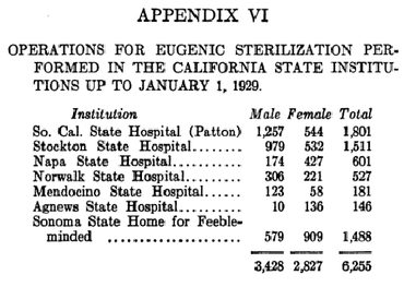 California’s eugenics program proved so efficient that in the 1930s, Nazi scientists asked California eugenicists for advice on how to run their own sterilization regime. “Germany used California’s program as its chief example that this was a working, successful policy,” says Christina Cogdell, author of Eugenic Design. ”They modeled their law on California’s law.”